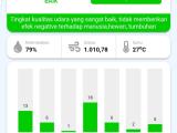 Nilai indeks 18 dengan kualitas udara yang sangat baik, tidak memberikan efek negative terhadap manusia, hewan, tumbuhan.